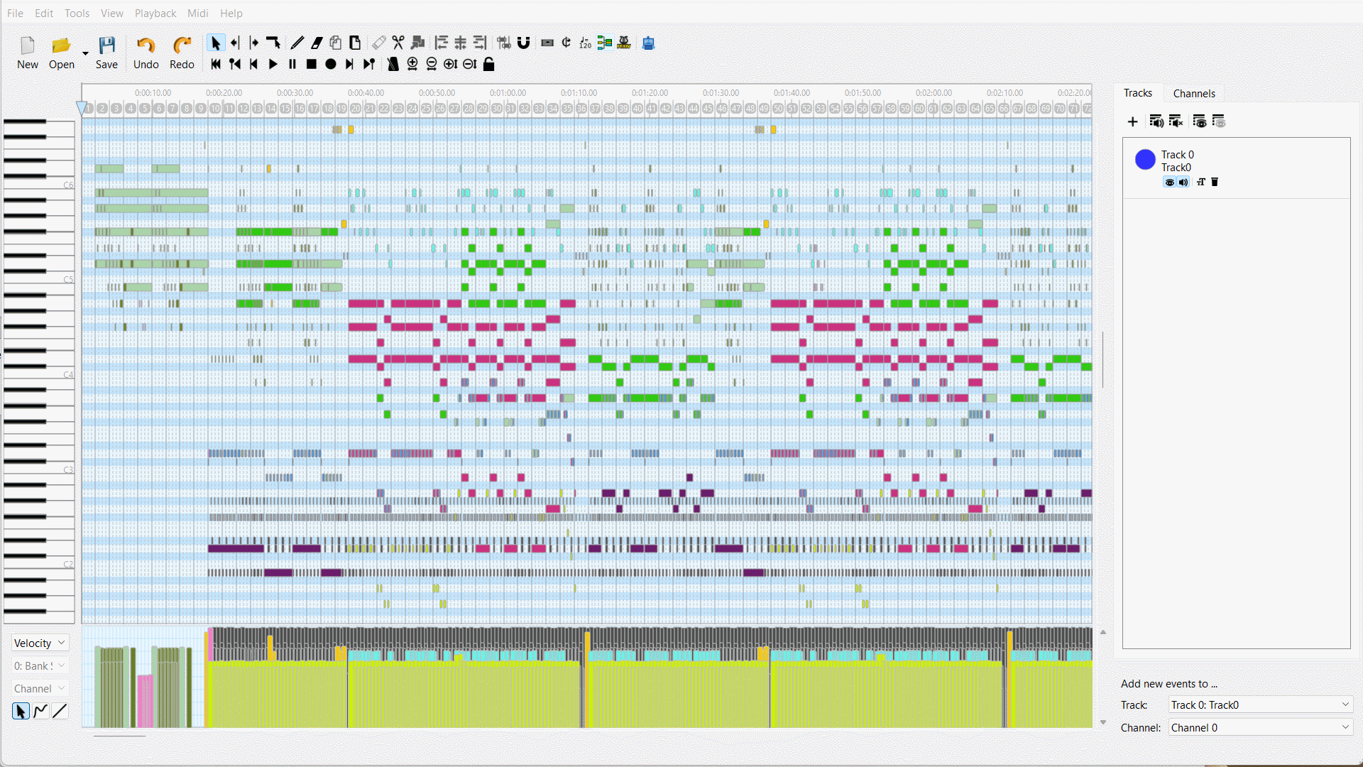 Split Channels to TracksThe Split Channels to Tracks tool converts a single-track multi-channel MIDI file (Format 0) into one track per channel (Format 1 style). This is essential for working with GM MIDI files downloaded from the internet, where all instruments are crammed into a single track — making it impossible to hide, solo, recolor, or edit individual instrument parts.